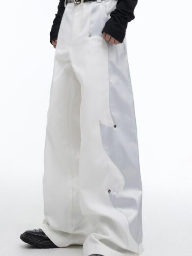 Niche Structured Leather Patchwork Flame Rivet Trousers